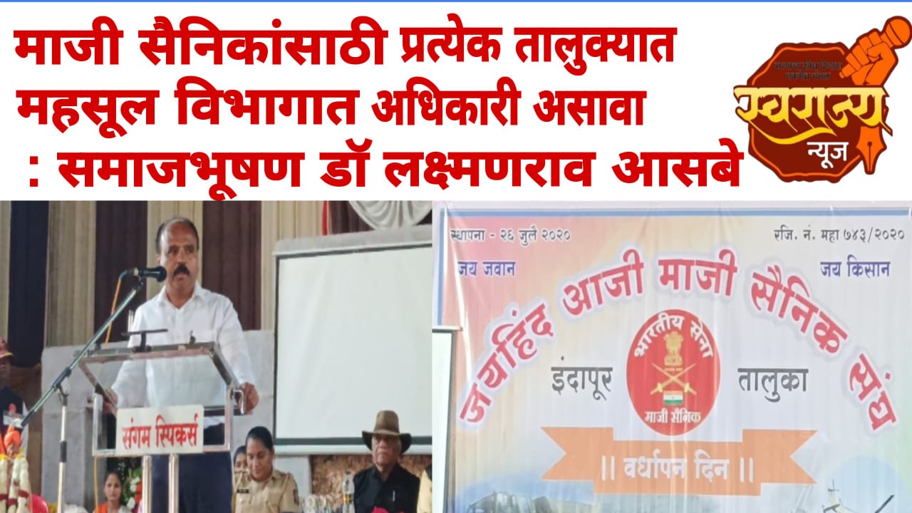 माजी सैनिकांसाठी महाराष्ट्रात महसुल विभागात स्पेशल अधिकारी असावा : समाजभूषण डॉ. लक्ष्मणराव आसबे