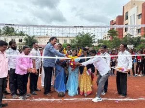 माजी मंत्री हर्षवर्धन पाटील यांनी सर्व संघ आणि खेळाडूंना शुभेच्छा दिल्या तसेच विध्यार्थी खेळाडू यांच्या समवेत सहभागी होत हॉलीबॉल खेळाचा आनंद लुटला.