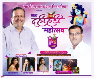 इंदापूर : (दि १५) इंदापूर शहरात जुने मार्केट कमिटीच्या भव्य पटांगणात भरतशेठ शहा मित्र परिवाराच्या वतीने उत्सवाचे आयोजन करण्यात आले आहे. या दहीहंडीकडे शहराबरोबरच संपूर्ण इंदापूर तालुक्याचे लक्ष वेधले आहे.