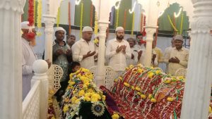 तीर्थक्षेत्र लुमेवाडी येथील गाजी-ए-मिल्लत सूफी संत हाजी हाफीज फतेह मोहंमद जोधपुरी बाबा यांचा उरुस शुक्रवार दि. 6 ऑक्टोंबर ते 8 ऑक्टोंबर दरम्यान होत असून आज दि.6 ऑक्टोंबर रोजी निरा भिमा सहकारी साखर कारखान्याचे संचालक व भाजपा युवा मोर्चा कोअर कमिटीचे प्रमुख राजवर्धन पाटील यांनी या उरुसानिमित्त सूफी संत हाजी हाफीज फतेह मोहंमद जोधपूरी बाबा यांच्या मजारवर फुलांची चादर अर्पण करीत दर्शन घेतले.