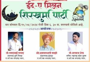 या शीरखुर्मा पार्टीचे निमंत्रक इंदापूर शहर मुस्लिम बांधव यांनी हजारोच्या संख्येने उपस्थित राहावे असे आवाहन केले आहे.
