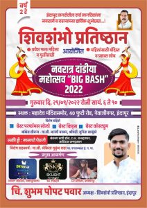 इंदापूरात येत्य गुरुवारी दिनांक २९ सप्टेंबर रोजी शिवशंभो प्रतिष्ठान आयोजित भव्य दांडिया महोत्सवाचे आयोजन केले असल्याची माहिती प्रतिष्ठानचे अध्यक्ष शुभम पोपट पवार यांनी दिली. प्रतिष्ठानचे हे दुसरे वर्ष आहे, हा महोत्सव इंदापूर येथे नेताजी नगर चाळीस फुटी रोड महादेव मंदिरासमोर या भव्य दिव्य दांडिया महोत्सवाचे आयोजन केले आहे. यासाठी या महोत्सवात फक्त स्त्रिया व मुलींनाच प्रवेश आहे. हा महोत्सव बंदिस्त व प्रशस्त जागेवर असणार आहे. महोत्सवामध्ये विविध बक्षिसे ठेवले आहेत, तर लकी ड्रॉ मार्फत मानाची पैठणी भाग्यवान विजेत्यास मिळणार आहे. महोत्सवासाठी विविध क्षेत्रातील मान्यवर उपस्थित राहणार आहेत. महोत्सवाचे उद्घाटक म्हणून नगराध्यक्ष अंकिता शहा तर प्रमुख पाहुणे म्हणून पोलीस निरीक्षक टी वाय मुजावर व नायब तहसीलदार अनिल ठोंबरे उपस्थित राहणार आहेत.