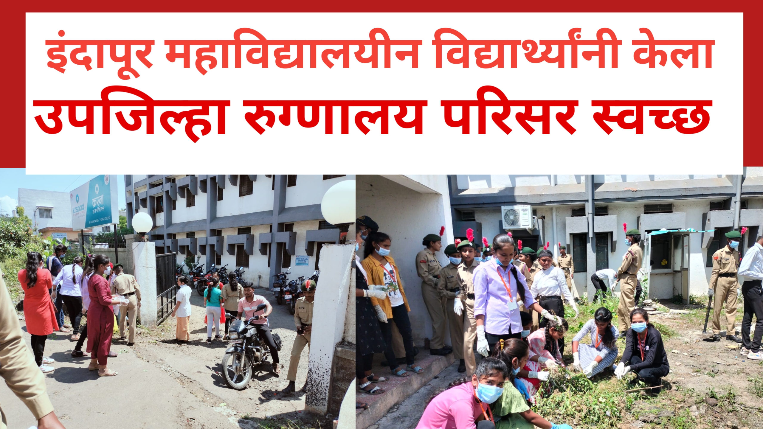या उपक्रमात महाविद्यालयातील 215 विद्यार्थ्यांनी रुग्णालय परिसरात असणारे गवत, प्लास्टिकच्या बॉटल , इतर वकचरा स्वच्छ करण्याचे काम केले .