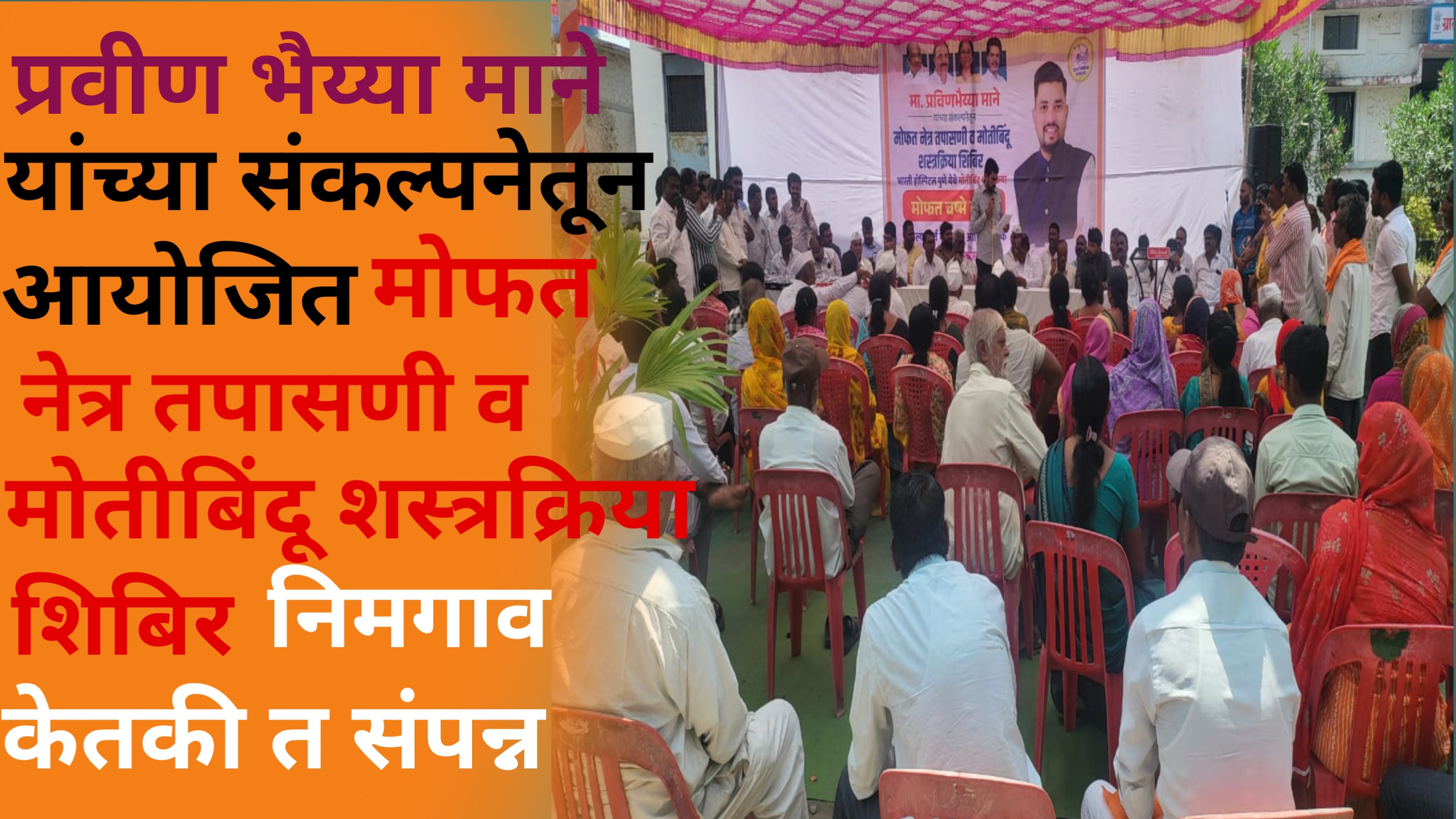 सोनाई परिवाराचे संचालक तथा माजी बांधकाम आरोग्य सभापती जिल्हा परिषद पुणे प्रवीण माने यांच्या माध्यमातून आयोजित करण्यात आलेले मोफत नेत्र तपासणी व मोतीबिंदू शस्त्रक्रिया शिबिर आज निमगाव येथील ग्रामीण रुग्णालय येथे संपन्न झाले.